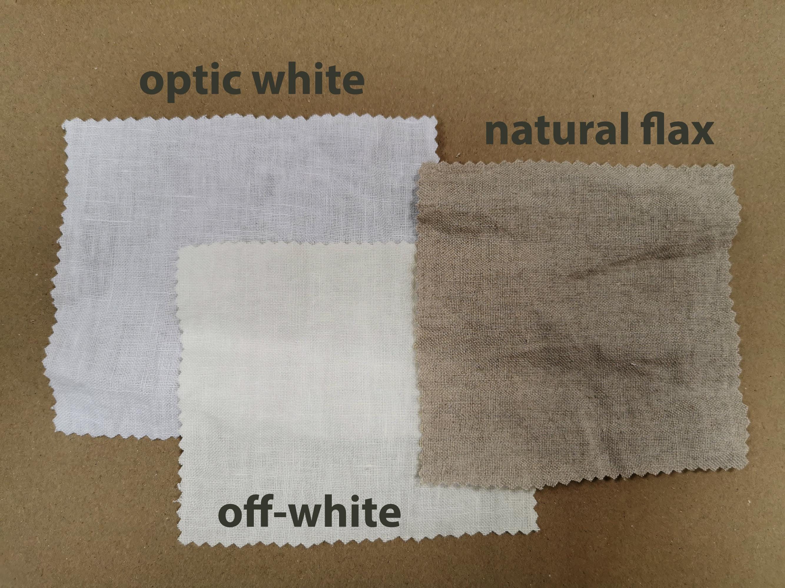 Natural linen fabric - natural grey or off-white - is dye-free linen, which differ in tone year from year. Natural grey maybe more or less brownish, darker or lighter; and off-white fabric maybe more or less ivory; striped - the natural grey stripes can be lighter or darker.