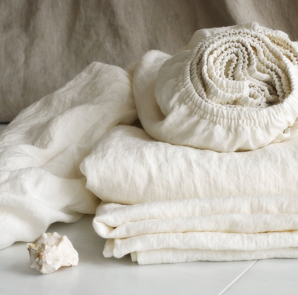 Pure linen deep pocket fitted sheets in antique white. Twin, Double, Queen, King, California King linen sheets, custom sizes linen bedding available.