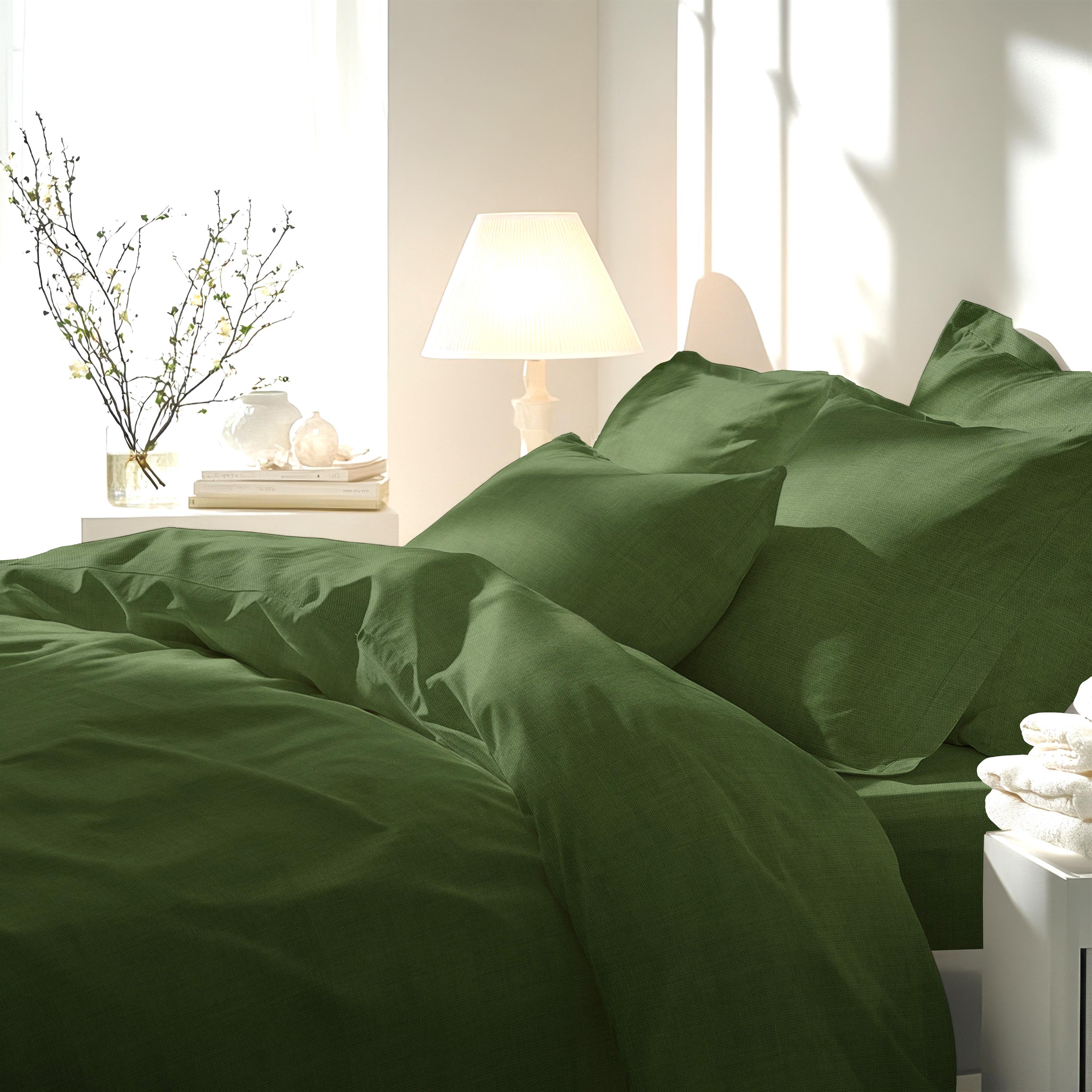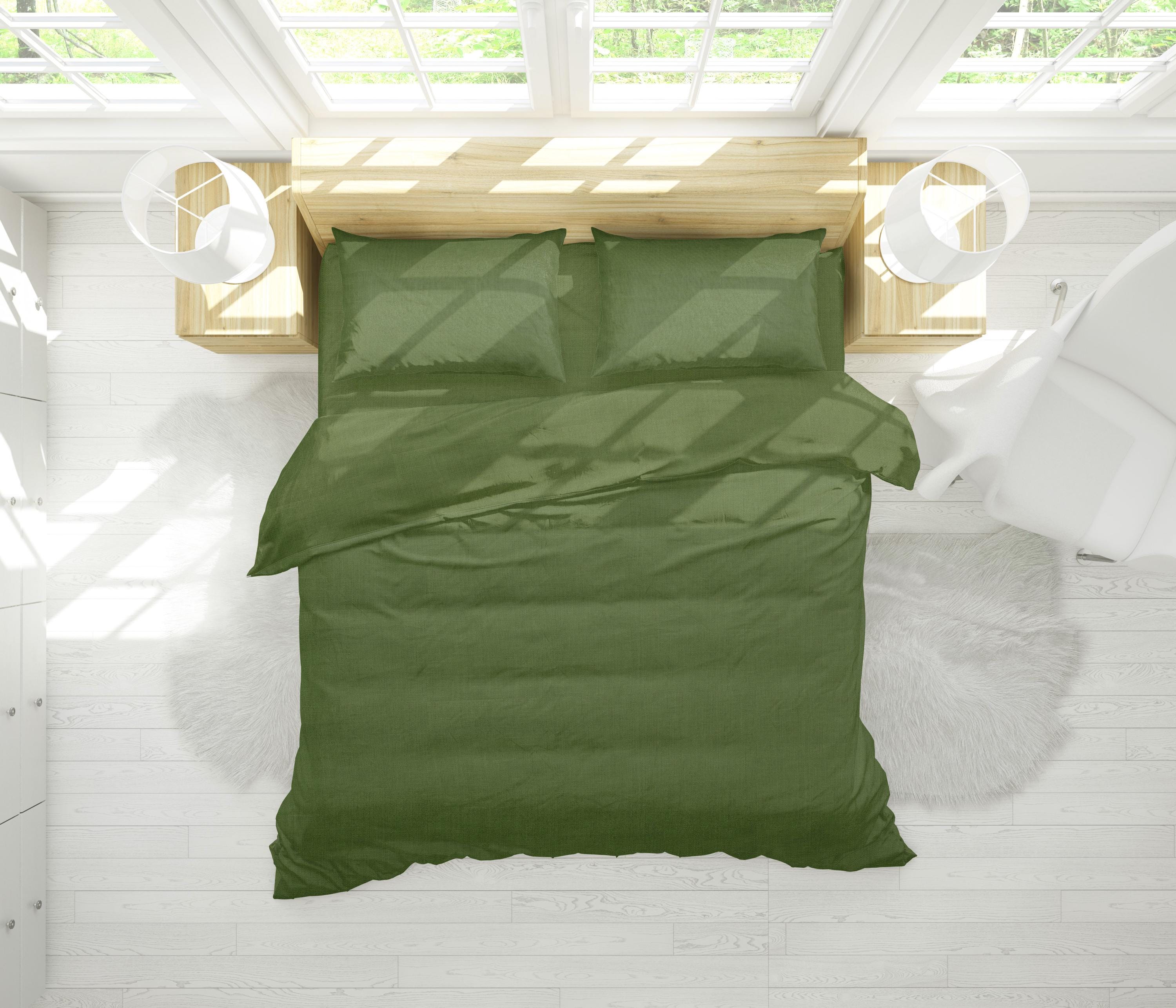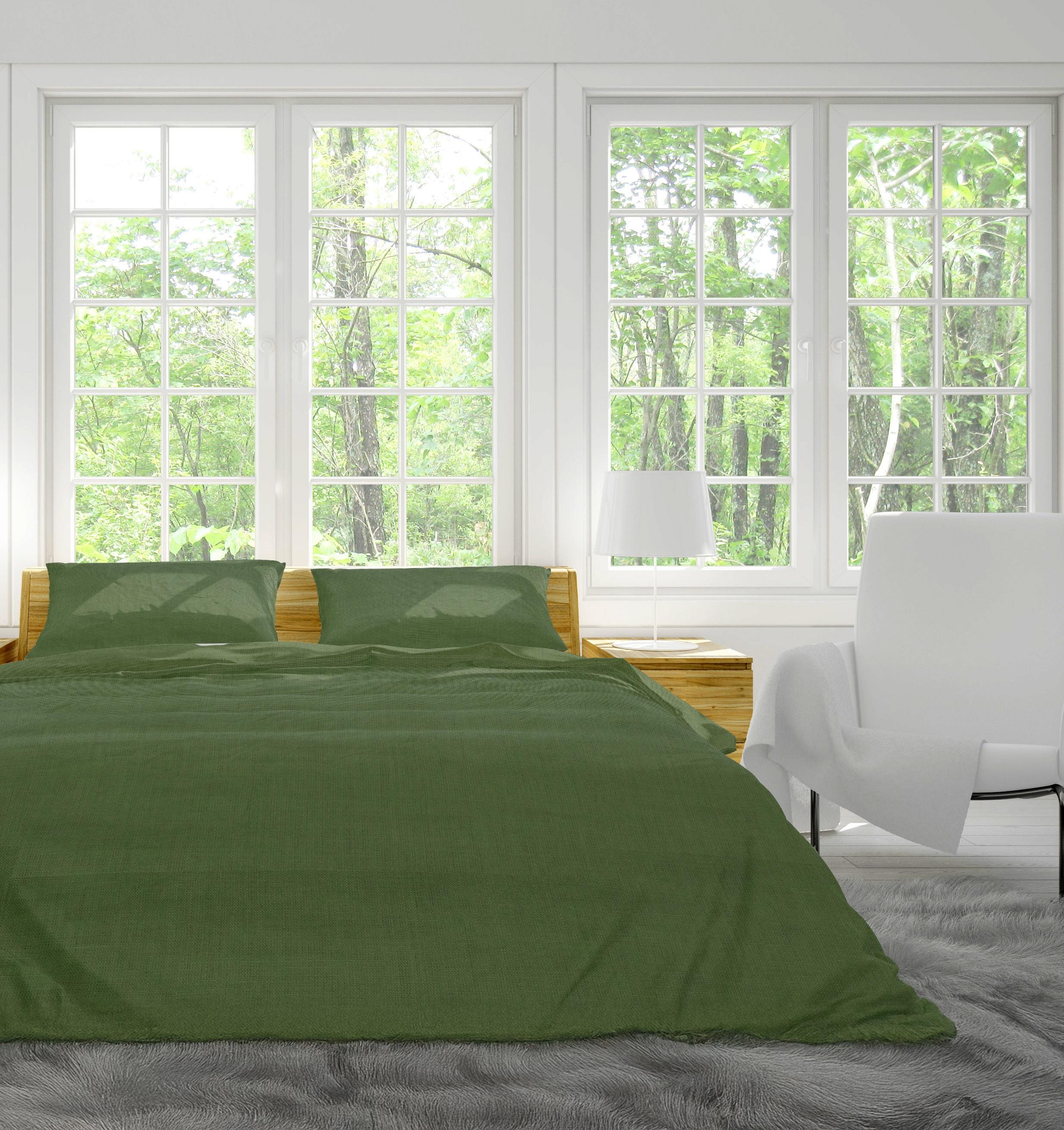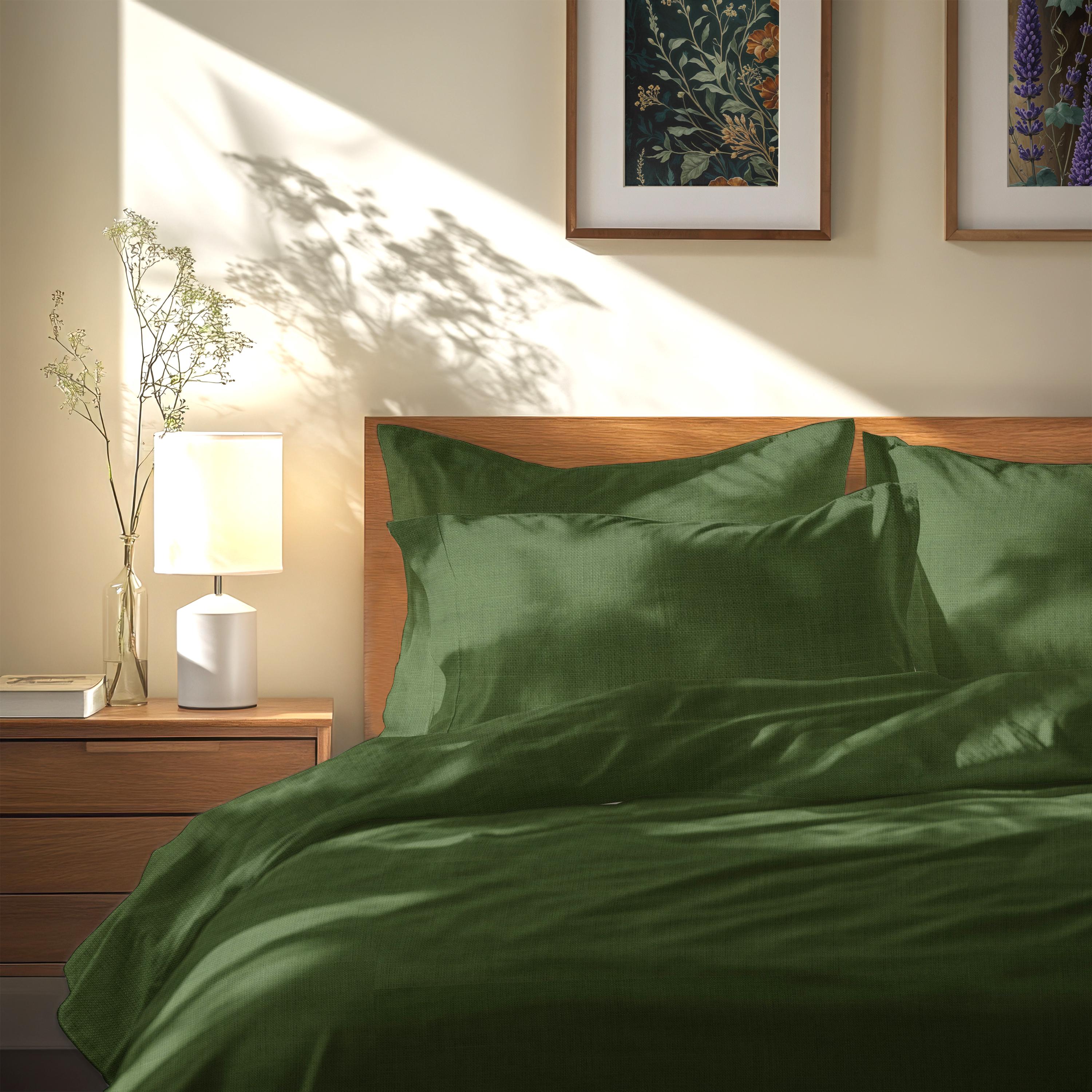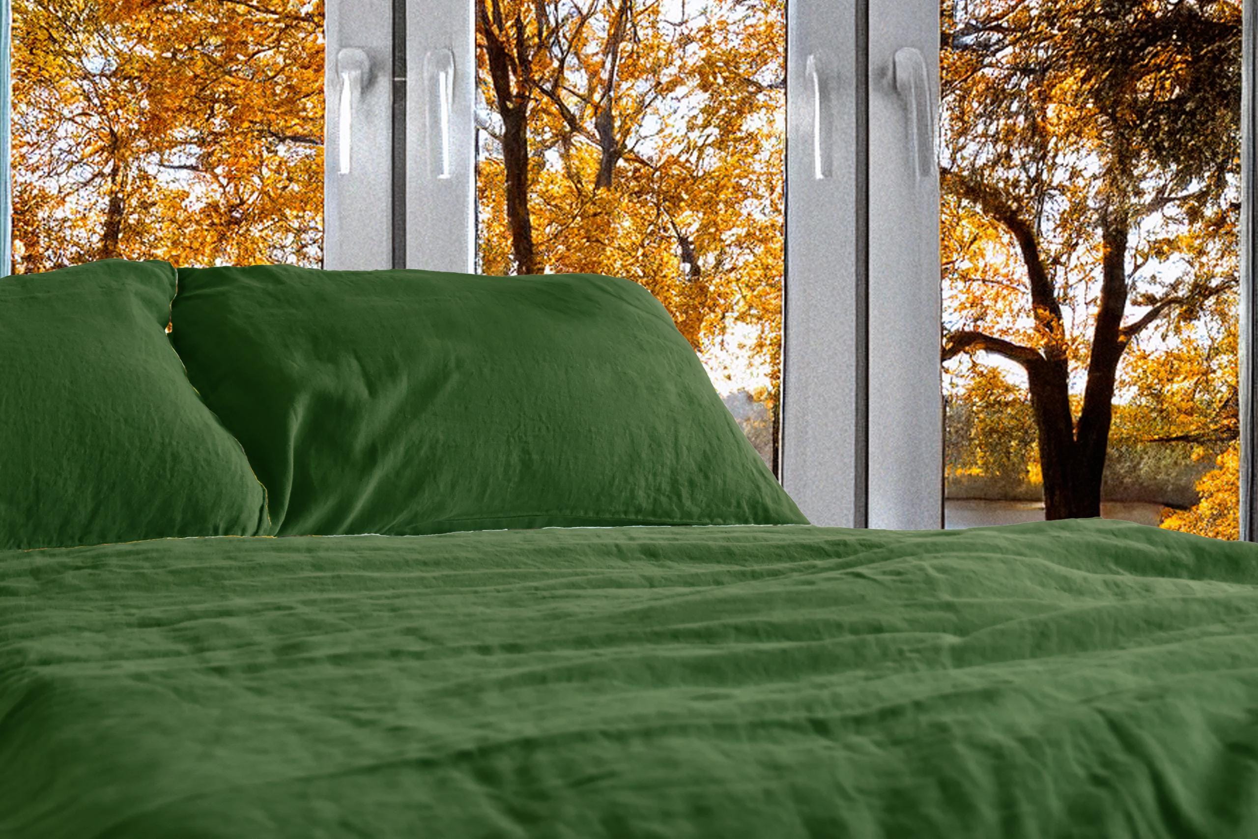 Forest green linen bedding - soft, breathable, soul-calming luxury.
