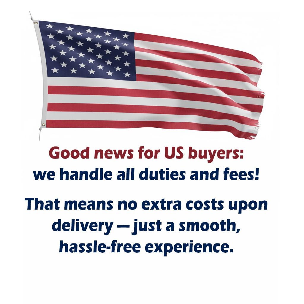 🇺🇸 Good news for US buyers: we handle all duties and fees! That means no extra costs upon delivery — just a smooth, hassle-free experience.